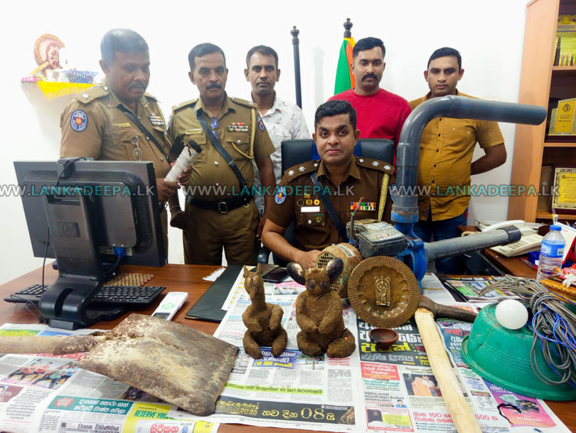 ගලෙන්බිඳුණුවැව පොලිස් ස්ථානයේ ස්ථානාධිපති චතුරංග මුරමුදලි මහතාට ලැබුණු තොරතුරකට අනුව සිදු කරන ලද එම වැටලීමේ දී එම ස්ථානය ආසන්නයේ තිබී පූජා භාණ්ඩ ඇතුළු කැණීම් උපකරණ කිහිපයක්ද පොලිසිය විසින් අත්අඩංගුවට ගෙන ඇත. ඒ අතර මැටියෙන් සාදන ලද රෑප 02 ක්ද, පහන් 01, දේවරූප 01, පන්දමක්, සවල් 01ක්ද පිකස් එකක්ද SOLAX වර්ගයේ වතුර මෝටරයක් ද පොලිසිය විසින් අත්අඩංගුවට ගෙන ඇත.