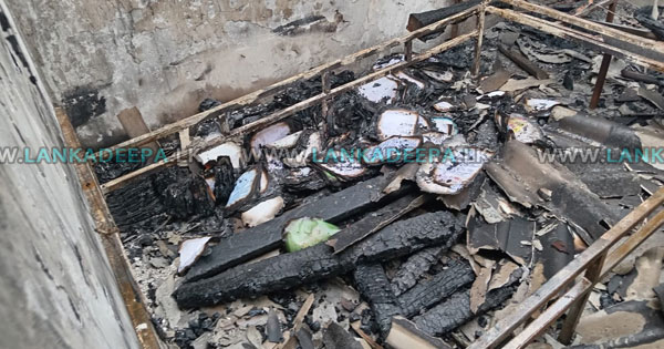 අපොස උසස් පෙළ විභාගයට පෙනි සිටින සිසුවියක පදිංචි නිවසට ඇගේ පියා ගිනි තැඹිම නිසා ඇගේ පොත් පත් සහ ඇඳුම් පැළඳුම් විනාශවී ඇතැයි පොලිසිය කියයි.