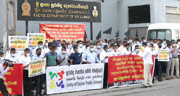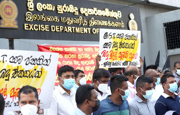 යෝජිත භාණ්ඩ හා සේවා බදු පනත අවලංගු කරන්නැයි ඉල්ලමින් සුරාබදු වෘත්තීය සමිති එකමුතුව අද (25) දහවල් රාජගිරිය සුරාබදු දෙපාර්තමේන්තුව ඉදිරිපිට විරෝධතාවක් පැවැත්වීය.