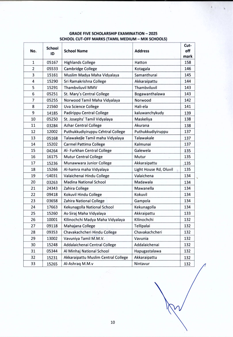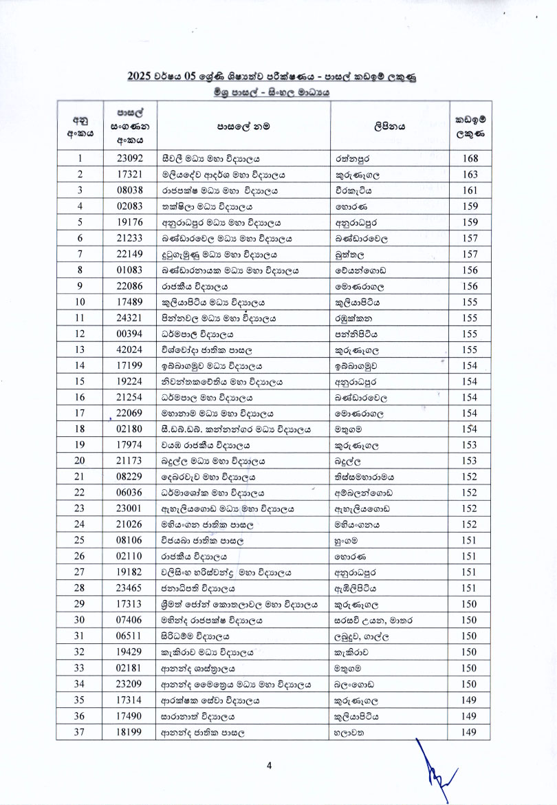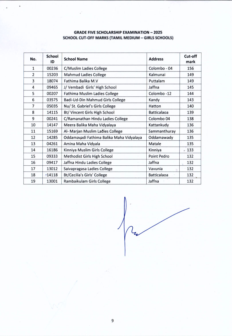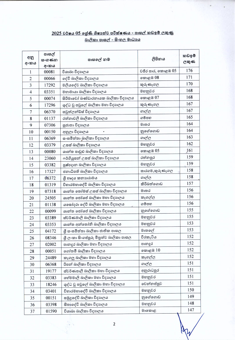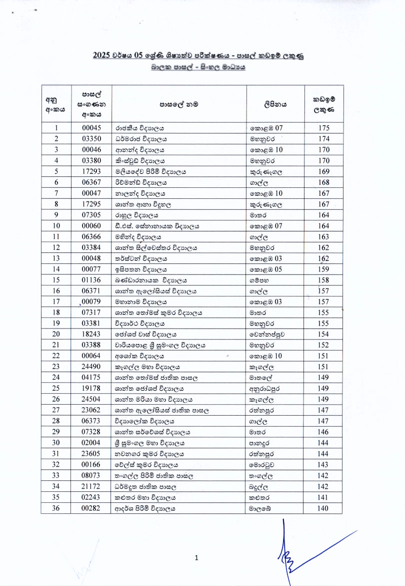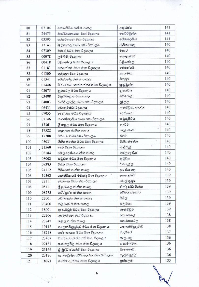 මෙවර 5 ශ්රේණියේ ශිෂ්යත්ව විභාගයේ ප්රතිඵල මත පාසල්වල 2026 වසරේ 6 ශ්රේණියට සිසුන් ඇතුළත් කිරීමට අදාළ පාසල් කඩඉම් ලකුණු මේ වන විට නිකුත් කර ඇත.