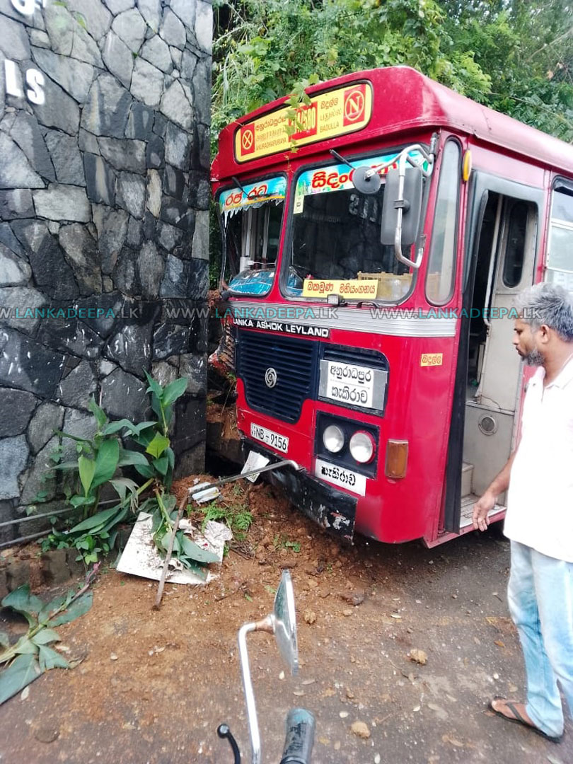 මේ අතර තුරේ තිරිංග පද්ධතියේ දෝෂයක් සමග දුන්හිඳ පල්ලමේ ධාවනය වෙමින් තිබූ මෙම බස් රථය රියැදුරුමහතා මාර්ගය අසල වේල්ලකට අල්ලා නවතා ගැනිමට උත්සාහ දරා ඇති අතර එය ව්යර්ථ වූ හෙයින් පල්ලමේ ඇදී ආ බස් රථය පහලින් පිහිටි කලුගල් තාප්පයකට අල්ලා කිසිදු කරදරයක් නොවන අයුරින් බස් රථය සමග මගී ජීවිත නිරුපද්රිතව බේරා ගැනිමට රියැදුරු ජනක මහතා සමත් වූ බවත් පොලිසිය සදහන් කලේය .