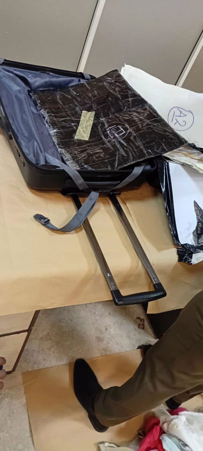 ඔහු විසින් රැගෙන ආ ගමන් මළු තුළ හෙරොයින් කිලෝ ග්රෑම් 02 යි ග්රෑම් 832 ක ප්රමාණයක් සගවා ගෙන සිටියදී රේගු මත්ද්රව්ය පාලන අංශයේ නිලධාරීන් විසින් අත් අඩංගුවට ගෙන තිබේ .
