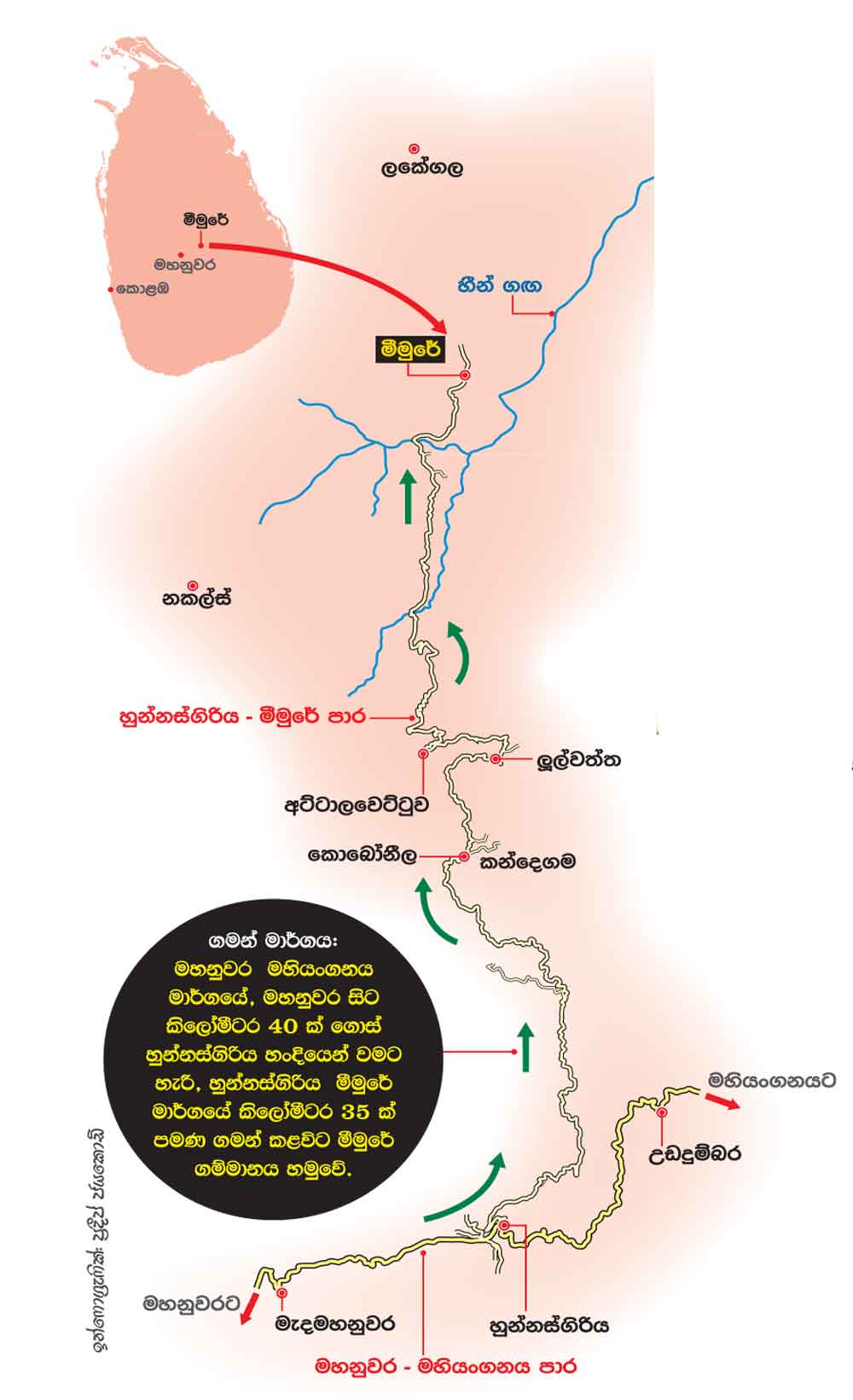 5 වැනිදා රජකාරි පටන් ගත්ත දවසෙම හුන්නස්ගිරියේ ඉඳලා කිලෝ මීටර් 9 ක් පමණ දුරට තමයි වාහනයක යන්න ලැබුණේ. එතන ඉඳලා මීමුරේ තැපැල් කන්තොරුවට යනකම් කිලෝ මීටර් 23 ක් යන්න වුණේ පයින්. මේ විදිහට දවස් 6-7 ක් ගියා.”
