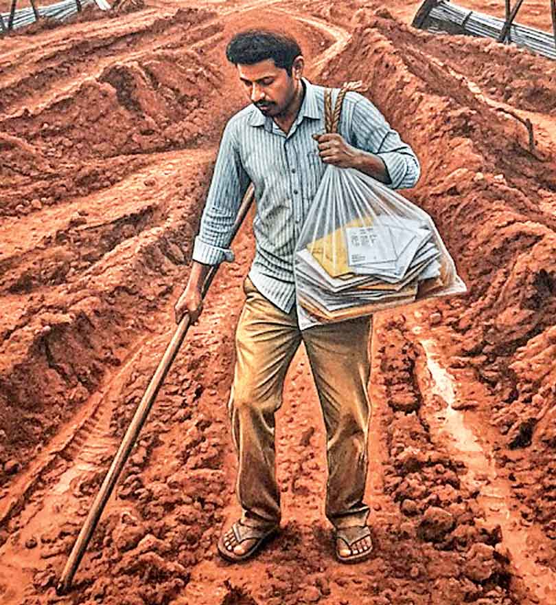 මහ වැස්සේ අඩුවකුත් නැහැ. රේන්කොට් එකට අමතරව ඉටි කොළේකිනුත් ආවරණය කරගෙන තමයි මම ගියේ. ගමට ගිය පළමු දවසේ යද්දි එක තැනක් තිබුණා පාර තිබුණ තැනක්වත් හොයා ගන්න නැහැ. මම එතනට ඇවිත් විනාඩි පහක් විතර කල්පනා කළා කොහොමද එගොඩ වෙන්නේ කියලා. ඇත්තටම මට ආපහු හැරිලා යන්න හිතුණා. අඩිය පස්සට තියන්න හිතුණත් මම මේ ලියුම් ටික අරගෙන නොගිහින් කෙනකුගේ ජීවිතේට අතපසු වීමක් වුණොත් මට ඒක ජීවිත කාලෙම බලපානවා. මට ඒ ගැන හිතුණාම ආපහු හැරෙන්න හිතුණේ නැහැ.