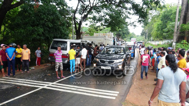 දඹුල්ල මාතලේ ප්රධාන මාර්ගයේ පන්නම්පිටියේ දී අද(3) වෑන් රියක් සහ බස් රථයක් මුහුණට මුහුණ ගැටීමෙන් එක් අයකු මියගොස් 12 දෙනකු තුවාල ලබා ඇතැයි දඹුල්ල පොලිසිය කියයි.