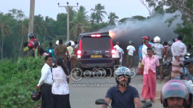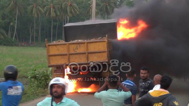 වීරකැටිය රාජපක්ෂ විද්යාලයේ ඉගෙනුම ලබන සිසුවිය සිය පියා සමග යතුරුපැදියෙන් ගමන් කරමින් සිටියදී එසේ අනතුරට ලක්ව ඇති අතර ප්රකෝපකාරීවු ප්රදේශවාසීහු ටිපර් රියට ගිනි තැබූහ.