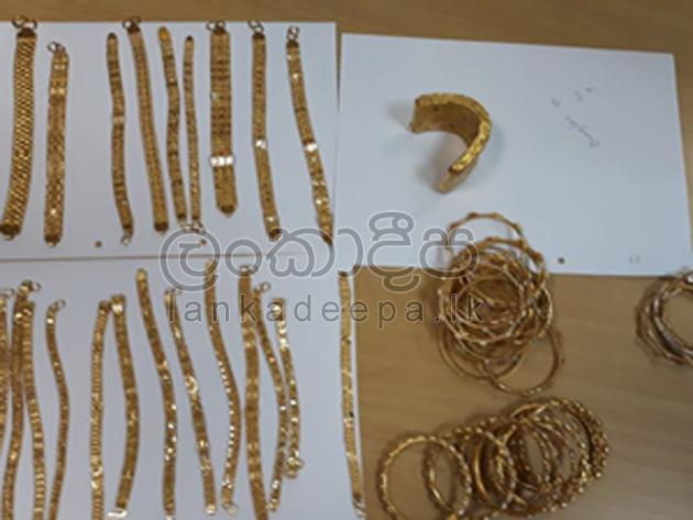 එහි කිලෝ ග්රෑම් 3 යි ග්රෑම් 13 ක් බර රත්තරන් කුට්ටි සහ ස්වර්ණාභරණ තොගයක් සඟවා ගෙන තිබූ බව රේගු මාධ්ය ප්රකාශක පවසයි.