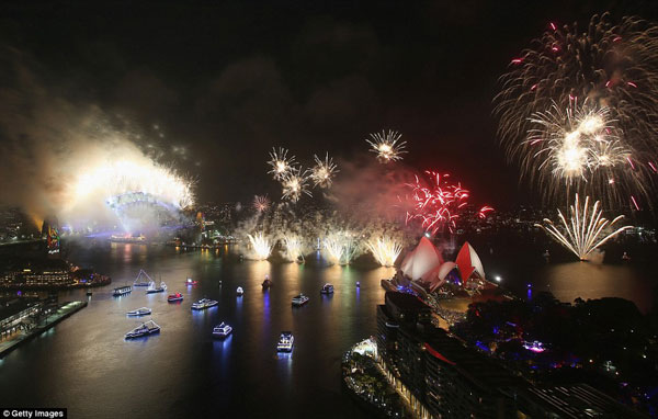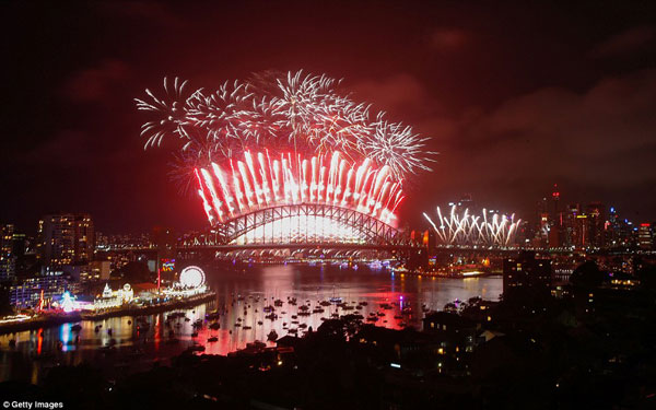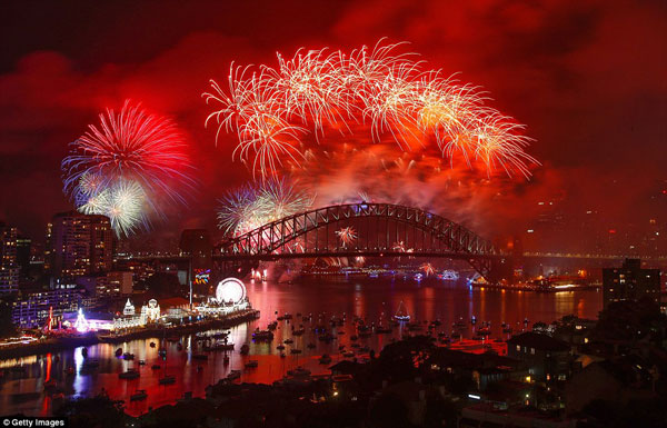 සැමෝවා ආදී දූපත්වලට පසු නව අවුරුද්ද උදාවන ප්රධාන රටවල් වනුයේ නවසීලන්තය හා ඕස්ට්රේලියාවයි. අලුත් අවුරුදු උදාව සැමරීම දහස් ගණන් ඕසට්රේලියානුවෙන් සිඞ්නි වරාය ආසන්නයට එක්රැස්වූහ.