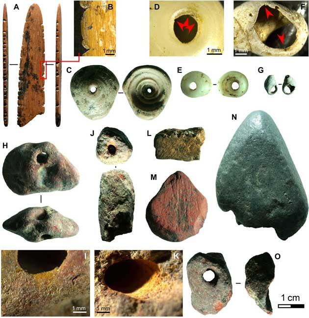 මෙම ගවේෂණ කණ්ඩායම ආදි මානවයා විසින් භාවිතා කළ පබළු, පාෂාණවලින් තැනූ මුතු වැනි ආභරණ කොටස් ද සොයාගෙන ඇත.