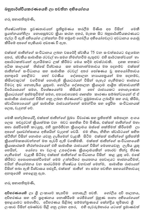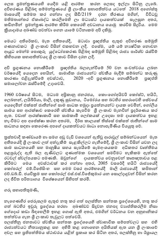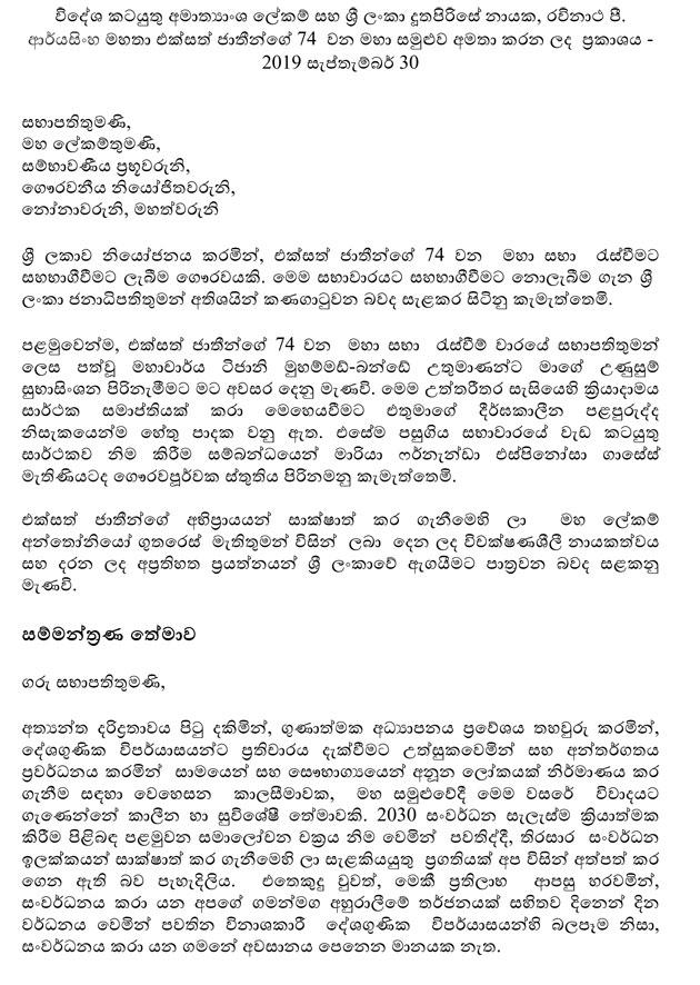 එක්සත් ජාතීන්ගේ 74 වැනි මහ මණ්ඩල සැසිය අමතමින් විදේශ කටයුතු අමාත්යාංශයේ ලේකම් රවිනාථ ආර්යසිංහ ඒ බව සඳහන් කළේය.