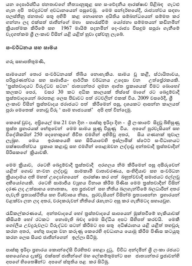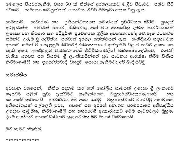 ශ්රී ලංකාව ගෝලීය සාමයට සහ ආරක්ෂාව උදෙසා අඛණ්ඩව කැපවී සිටින බවත් වඩාත් සාමකාමී සහ සුරක්ෂිත ලෝකයක් උදෙසා ශ්රී ලංකාව ලබාදෙන දායකත්වය සුරක්ෂිත කරන බවත් රවිනාථ ආර්යසිංහ මහතා කීවේය.