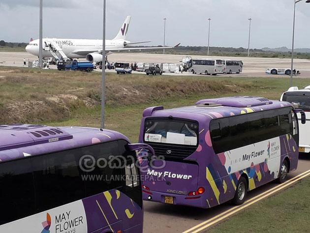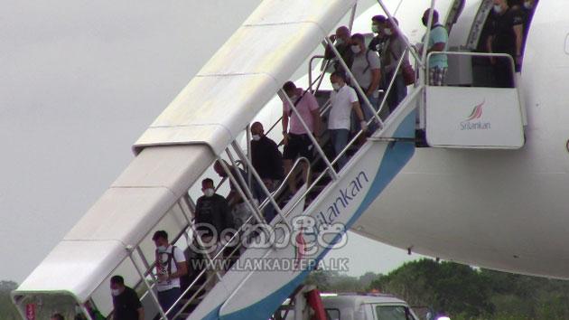 ඉතාලියේ රෝමයේ ලියනාඩෝ ඩාවින්සි ගුවන් තොටුපොළේ සිට Wamos ගුවන් සේවයට අයත් ඒ.330 වර්ගයේ ඊ.බී.544 දරන විශේෂ ගුවන් යානයෙන් පිරිස පෙරවරු 10.20ට මත්තල රාජපක්ෂ ගුවන් තොටුපොළට පැමිණියහ.