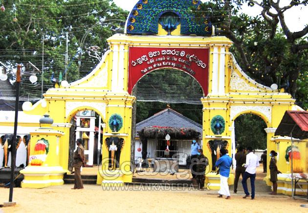 ඓතිහාසික රුහුණු මහා කතරගම දේවාලයේ ඇසළ පෙරහර උත්සවය සඳහා සහභාගී වීමට පැමිණි බැතිමතුන් ආපසු හරවා යැවීමට අද (21) උදෑසන සිට ආරක්ෂක අංශ නිලධාරීහු කටයුතු කරති. කොරෝනා වසංගතය සමඟ රටේ පවතින තත්ත්වය හේතුවෙන් මෙවර පෙරහර මංගල්ය සඳහා කිසිදු බැතිමතකු සහභාගී නොකරගන්නා ලෙස සෞඛ්ය අංශ ලබා දී තිබෙන උපදෙස් අනුව එසේ සිදු කෙරිණි.