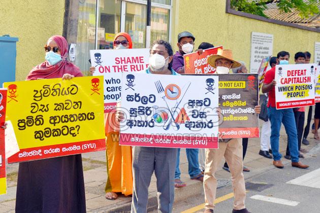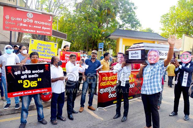 ජනතාවට වස කවන ආයතන රටට හෙළි කරන්නැයි ඉල්ලා සමාජවාදී තරුණ සංගමය සංවිධානය කළ උද්ඝෝෂණ කොළඹ නාරාහේන්පිට ඇල්විටිගල මාවතේ පිහිටි ශ්රී ලංකා ප්රමිති ආයතනය ඉදිරිපිට දී අද (09) පැවැත්විණ.