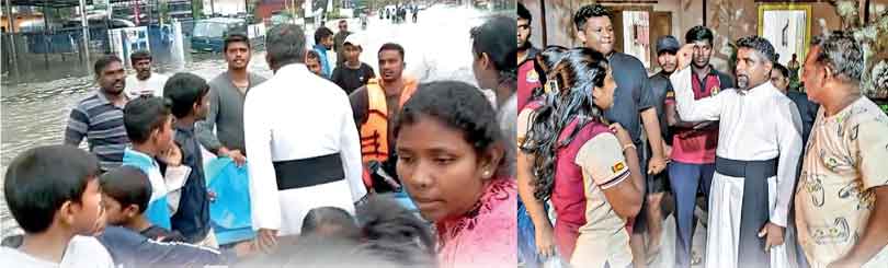 ගමට කිට්ටුවෙද්දී අපිට ඇහෙනවා මිනිස්සු කෑ ගහනවා අනේ අපිව බේරගන්න කියලා. එක තාත්තා කෙනෙක් කෙනෙක් කෑ ගහනවා මගේ දරුවොයි නෝනයි හිරවෙලා ඉන්නේ අනේ බේරගන්න කියලා. ඒ අය වෙනත් ප්රදේශයක ඉඳලා මයික්කුම පුදේශයේ ඥාති ගෙදරක ආපු දිවුලපිටිය පැත්තෙ කට්ටියක්. අවුරුදු දෙකක ගෑනු ළමයෙක් සහ අවුරුදු හතරක ගැහැනු දරුවවයි අම්මායි ආච්චියි හිර වෙලා. පාන්දර පහේ ඉඳලා පාරට එන්න උත්සහ උත්සාහ කළා. ඒත් එන්න විදියක් නෑ. වතුර පාර සැරයි කිව්වා. අනේ මගේ දරුවන්ට මේ වෙනකොටත් මොනව වෙලාද දන්නෑ පුළුවන්නම් බේරලා දෙන්න ෆාදර් කියලා බැගෑපත් වුණා. අපි යද්දි ඒ ගෙදර වහල මට්ටමට ගෑවෙන්නම වතුර. ඒ අම්මා දරුවො දෙන්නා මෙට්ටයක් උඩ තියලා බෙල්ල ළඟට වතුර. ඒ අම්මා දරුවෝ දෙන්නත් අල්ලන් ගෙදර බාල්කේ එල්ලිලා හිටියා. ලොකු උත්සාහයක් අරන් ඒ අය මුදවා ගත්තා. මට දැනුණේ දෙවියන් වහන්සේ ඒ අයගේ රැකවරණය සලසලා තිබුණා. අපිව උන් වහන්සේ ඒකට ආයුධයක් කරගත්තා කියන එක.