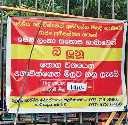 පසුව ලංකා සතොස ඉදිරිපත්ව දේශීය ලොකු ලූනු ගොවියා නඟා සිටුවීම බව හුවා දක්වමින් දැන්වීම් ප්රදර්ශනය කරමින් රජය ලොකු ලූනු මිලදී ගන්නා බව ප්රකාශ කළද ඒ සඳහා ඉතිහාසයේ කවරදාවත් නැති කොන්දේසි මාලාවක් යොදවා ඇතැයි ඔහු සඳහන් කළේය.