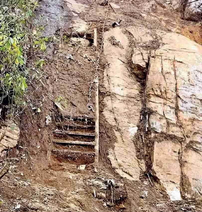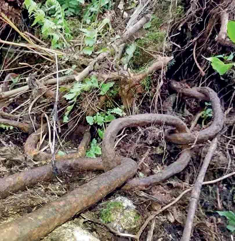 නායයාම නිසා මතුව ඇති පැරණි යකඩ ඉණිමග සහ දම්වැල්