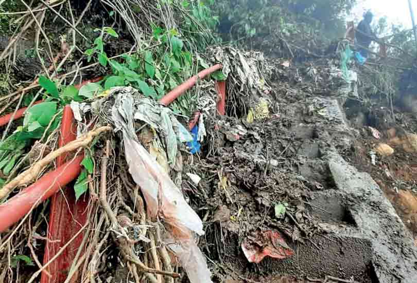 ශ්රී පාදස්ථානාධිපති හිමියන් පැවසූ පරිදි එලෙස නායගොස් තිබුණේ වසර පනහකට අධික කාලයක් තිස්සේ එකතු වෙමින් තිබූ කසළ කන්දකි. සිරිපා උඩමළුවෙන් පහළට දැමූ පොලිතීන්, ප්ලාස්ටික් සහ නොදිරන අපද්රව්ය රැසක් කාලාන්තරයක් තිස්සේ එහි තිබූ බව නායගිය පස් කොටස්වලින් පෙනී ගියේය. ඒ කසළ සමග කන්දේ තිබු ගල් කිහිපයක් ද නායට ලක්ව පහළට පෙරළී මහගිරි දඹේ කොටසක් ද යටකරගෙන පහළට ගලාගෙන ඇවිත් තිබූ බව නිරීක්ෂණය විය. මහගිරිදඹේ ඉදිකිරීම්වලට පෙර සිරිපා කරුණා කළ ඉපැරණි යකඩ ඉණිමං කොටසක් ද යකඩ දම්වැල් කොටස් කිහිපයක් නායයාමෙන් පසු පසෙකින් දිස්විය.