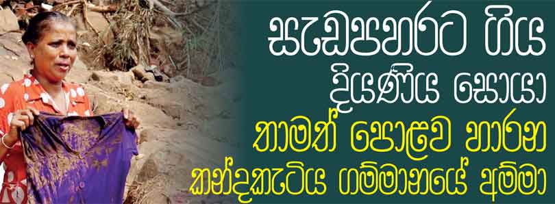 තමුන්ගේ අතින් අත ඇරී ඒ මහා නාය යාමට ගොදුරුවූ සිය ආදරණීය දියණීය තම ගෙවත්තේම කොතැනක හෝ පස් කන්දක් යට සිරවී ඇතැයි විශ්වාස කරමින් ඇය සොයා දෙන්නැයි හඬා වැටෙන මවක් වන කේ. එම්. බණ්ඩාරමැණිකා (50) අපට හමු වූයේ බදුල්ල, වියලුව, කන්දකැටිය, පල්ලේකන්ද ගම්මානයේදීය.