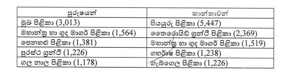 ශ්රී ලංකාවේ පිළිකා පිළිබඳ 2022 දත්ත