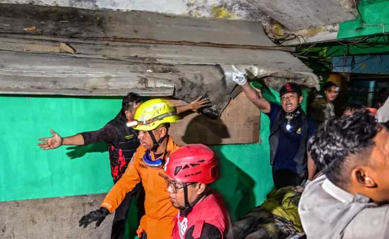 ඉන්දුනීසියාවේ නේවාසිකාගාර ගොඩනැගිල්ලක් කඩා වැටේ