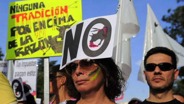 ගොන් පොර කුරිරු සම්ප්රදායක් බවත් එය තම ජාතිය නින්දාවට පත් කරන බවත් පවසමින් විරෝධතාකරුවෝ වීදි බැස සිටියහ. ඔවුන් පවසන්නේ විනෝදාස්වාදය සඳහා සතුන්ට වදහිංසා පැමිණවීම නැවැත්විය යුතු බවයි.