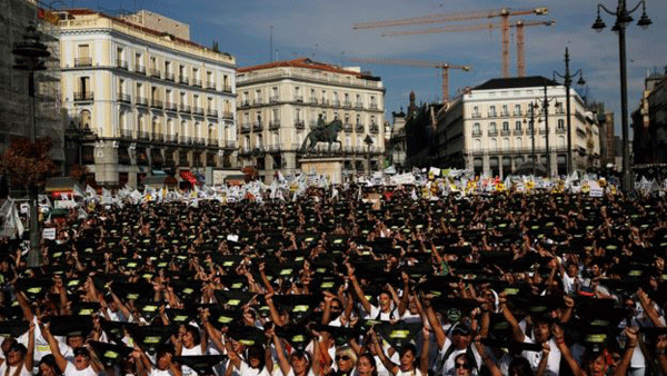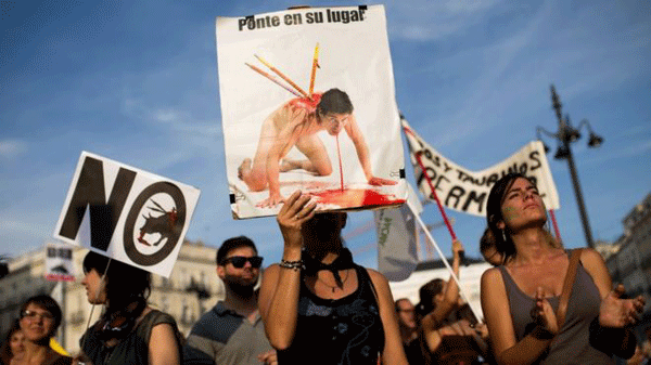 ස්පාඤ්ඤයේ සාම්ප්රදායිකව පවත්වන ගොන්පොර තහනම් කරන ලෙස ඉල්ලමින් මැඩ්රිඩ් නුවරට එක්වූ දහස් ගණන් ජනතාව විරෝධතාවයක් කළහ.