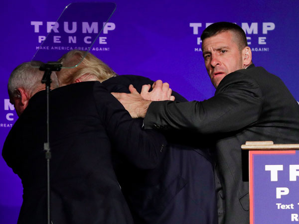තුවක්කුවක් රැගත් අයකු ට්රම්ප් සහභාගිවූ රැලියේ පිරිස අතර සිටින බවට ලද තොරතුරක් මත ඔහුගේ ආරක්ෂකයන් විසින් ට්රම්ප් ආරක්ෂාකාරීව වේදිකාවෙන් ඉවත් කැර ගැනිණි.