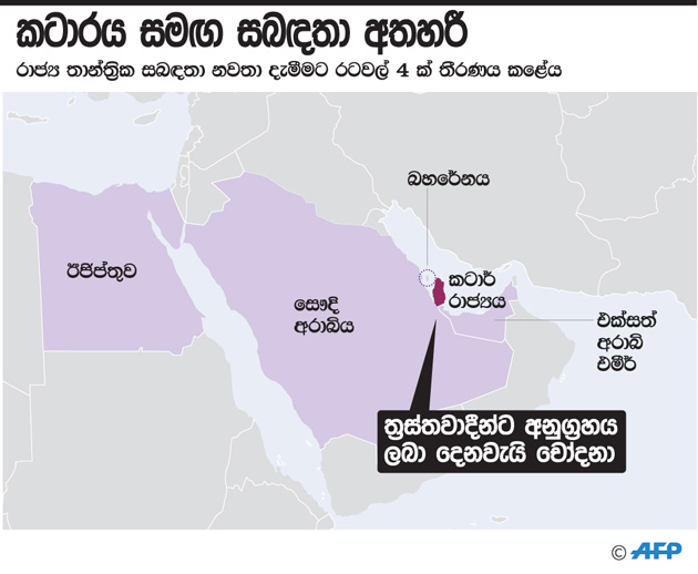 තම රට සමඟ තිබෙන සබඳතා නවතා දැමීමට සෞදි අරාබිය ප්රමුඛ රටවල් හතරක් ගත් තීරණය කිසිදු ආකාරයකින් සාධාරණය කළ නොහැකි බව කටාර් රාජ්ය ප්රකාශ කරයි.