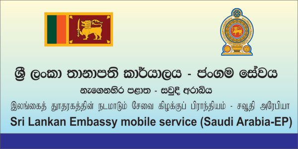 සෞදි අරාබියේ නැගෙනහිර කලාපීය තානාපති ජංගම සේවාව මෙවරත් සුපුරුදු පරිදි ඔක්තෝබර් දෙවැනි (2) වැනි සිකුරාදා පෙරවරු 7 සිට පස්වරු 2.30 දක්වා අල් කොබාර් වෙරළාසන්න පෙදෙසේ පිහිටි ගල්ෆ් ටෙරස් ප්ලාසා හෝටල් සංකීර්ණයේ පැවැත්වෙන බව රියාද් ශ්රී ලංකා තානාපති කාර්යාලය පවසයි.