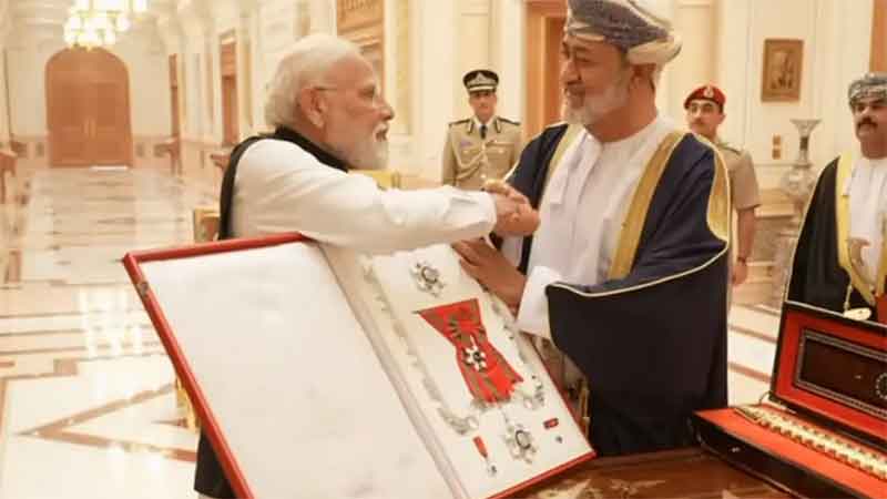 ඕමාන සංචාරය අතරතුරේ, ඉන්දීය අගමැති නරේන්ද්ර මෝදිට ඕමානයේ ඉහළම ගෞරව සම්මානය හිමිවිය.