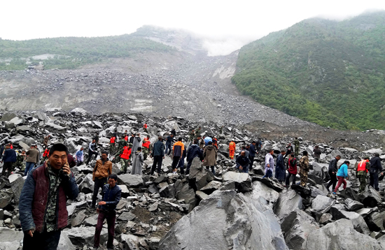 කඩාවැටුණු විශාල ගල් කුට්ටි ඉවත් කරමින් අතුරුදන් වූ පුද්ගලයන් සොයා මෙහෙයුම් ක්රියාත්මක කරමින් පවතින බව චීන මාධ්ය වාර්තා කර ඇත.