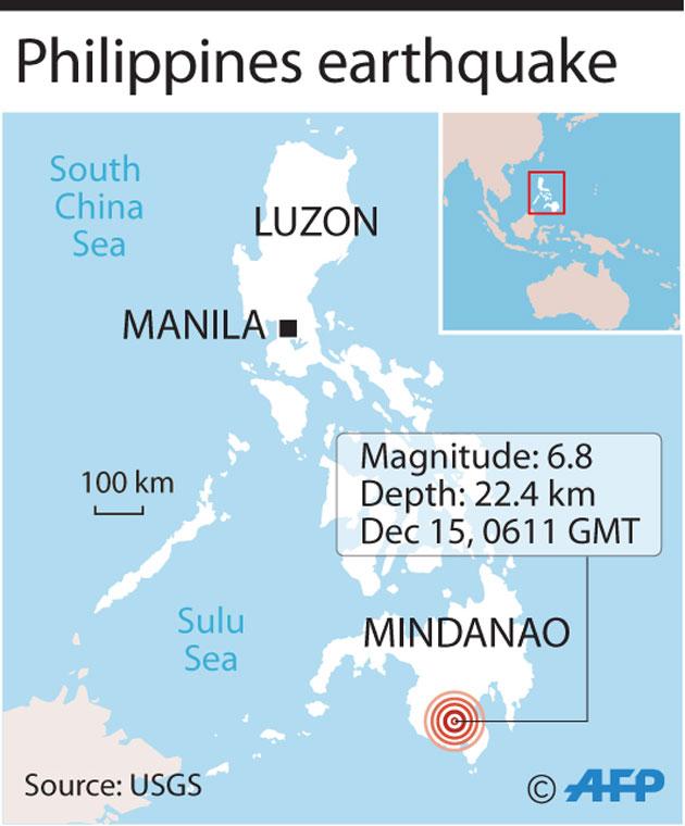 දකුණු දිග පිලිපීනයේ මින්දනාවෝ දූපත්වල රික්ටර් මාපකාංක 6.8ක ප්රබලත්වයකින් යුතු භූමිකම්පාවක් අද (15) හටගෙන ඇත.