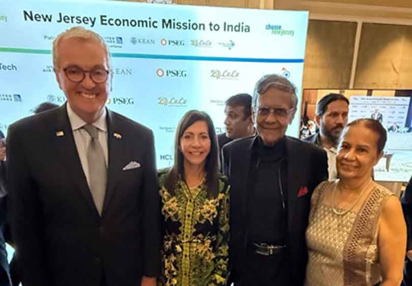 වම්පස සිට: 2025 සැප්තැම්බර් 24 වන දින මුම්බායි හි පැවති එක්සත් ජනපද-ඉන්දියානු ව්යාපාරික සමුළුවේදී නිව් ජර්සි ආණ්ඩුකාර ෆිල් මර්ෆි, තමරා මර්ෆි මහත්මිය, මහාචාර්ය මොහාන් මුණසිංහ සහ ශ්රියා මුණසිංහ මහත්මිය.